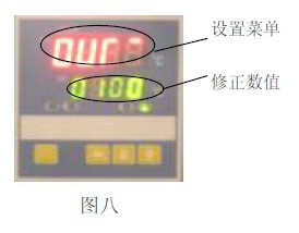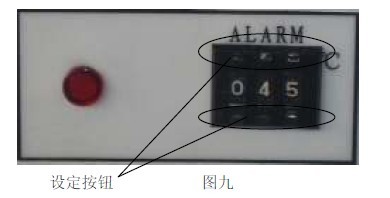 11.2 見圖九,用面板上超溫設(shè)定撥盤的+、— 按鈕進(jìn)行設(shè)定所需限溫溫度。